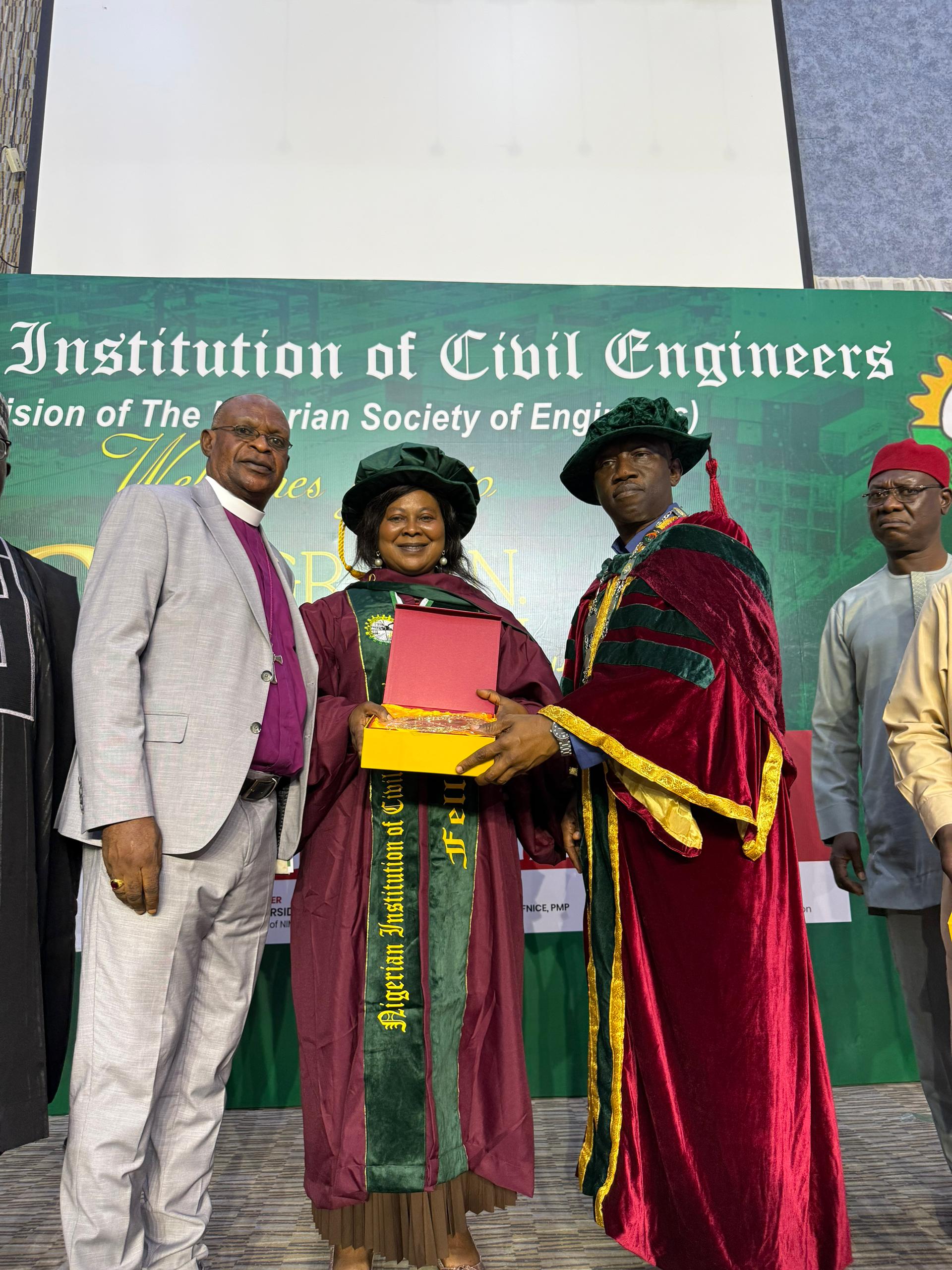 Engineer (Mrs.) Catherine Aladekugbe has been conferred with the prestigious Fellowship of the Nigerian Institution of Civil Engineers (NICE), in recognition of her professional excellence and contributions to the engineering profession.